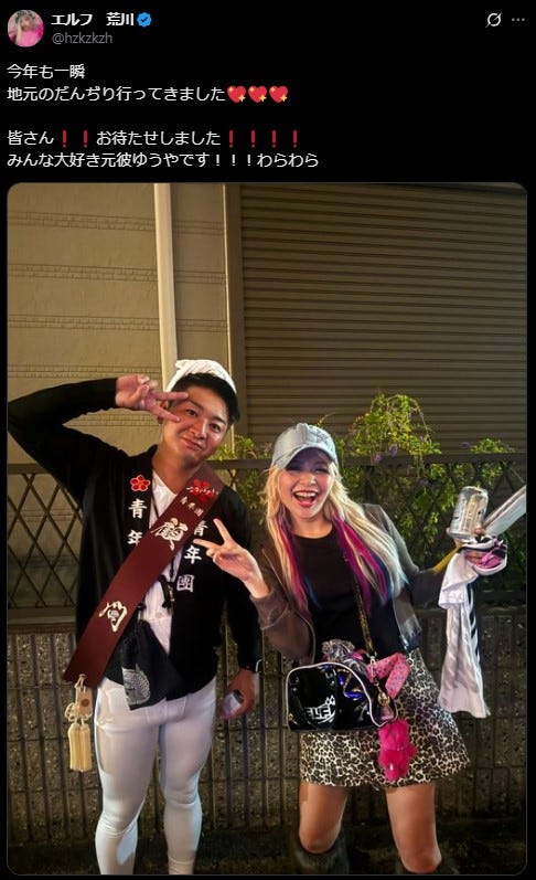 エルフ荒川、“元彼”顔出し2ショット公開「笑顔で写真撮影すごい」「楽しそう」の声