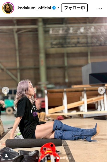 倖田來未、ビッグTシャツから美脚披露「筋肉ラインがすごい」「かっこいい」の声