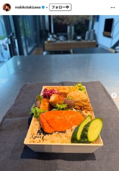モデルの滝沢眞規子が10月14日、自身のInstagramを更新。健康的な手作り弁当を公開した。