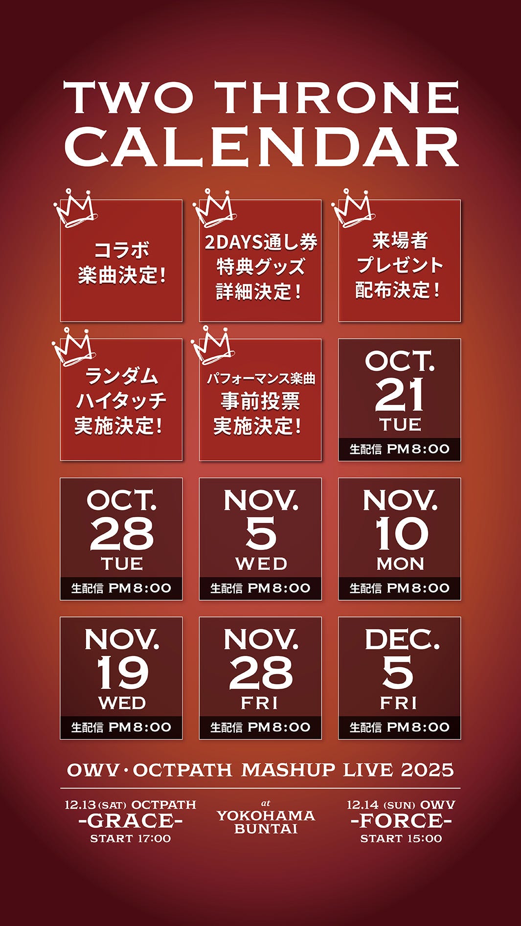OWV&OCTPATH「TWO THRONE」パフォーマンス投票企画の実施発表 互いの楽曲をカバー