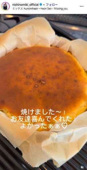 西野未姫、友達へのチーズケーキ作り動画公開「何でも作れて尊敬」「すごく美味しそう」の声