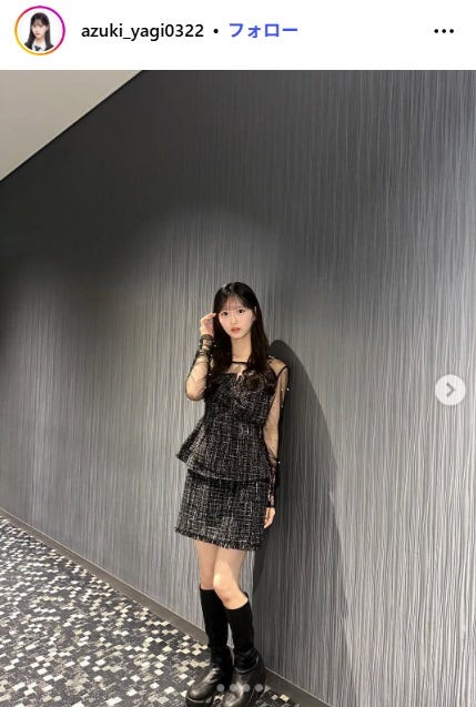 AKB48八木愛月、ツイードコーデで美脚見せ「手脚長い」「私服オシャレ」の声