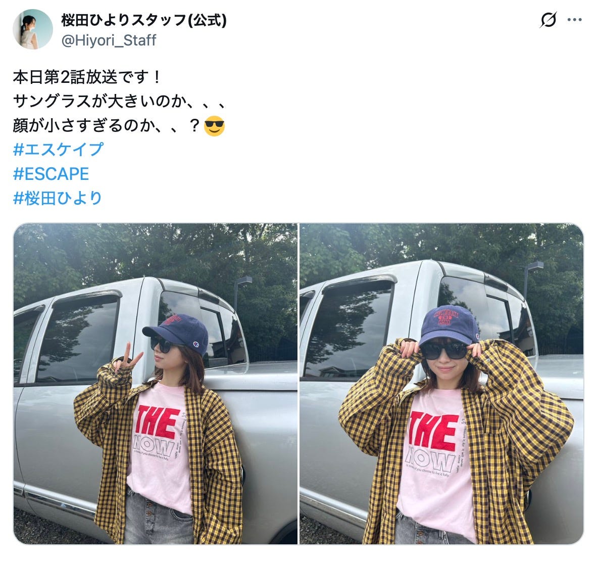 桜田ひより、サングラス×キャップ姿のドラマ「ESCAPE」オフショットに「顔が小さすぎる」「小顔が際立つ」の声