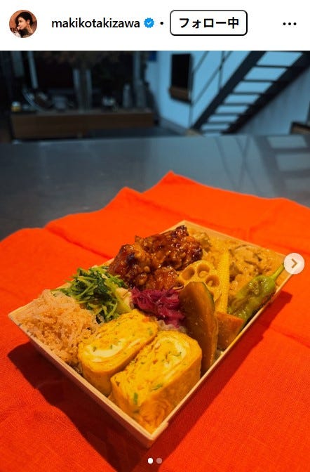 モデルの滝沢眞規子が10月16日、自身のInstagramを更新。季節感あふれる手作り弁当を公開した...