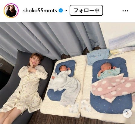 タレントの中川翔子が10月16日、自身のInstagramを更新。双子との3ショットとともに、育児の...