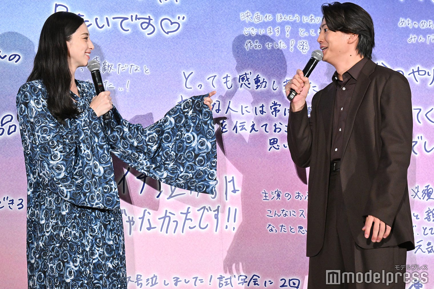 女優の當真あみと俳優の齋藤潤が17日、都内で行われた映画『ストロベリームーン 余命半年の恋』初日舞台...