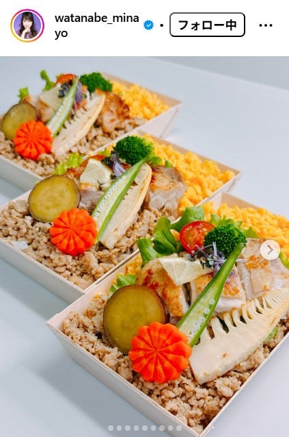 元おニャン子・渡辺美奈代、夫&息子たちに作った「2色丼」弁当公開「愛情たっぷり」「盛り付けセンスが神」と反響