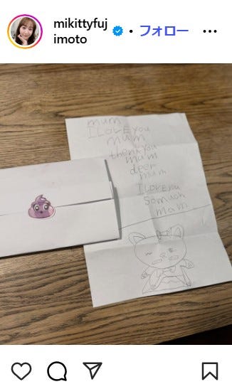 藤本美貴、次女から贈られた英語の直筆手紙&イラスト公開「ウルウルしちゃう」「愛が詰まってる」と反響