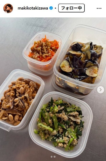 モデルの滝沢眞規子が10月19日、自身のInstagramを更新。週末に向け作り置きしたというおかず...