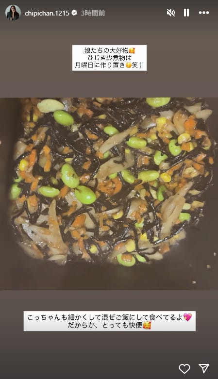 モデルの近藤千尋が10月20日、自身のInstagramストーリーズを更新。娘たちの好物料理を公開し...
