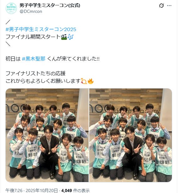 “日本一のイケメン中学生”を決めるコンテスト「男子中学生ミスターコン2025」の敗者復活戦の結果が、...