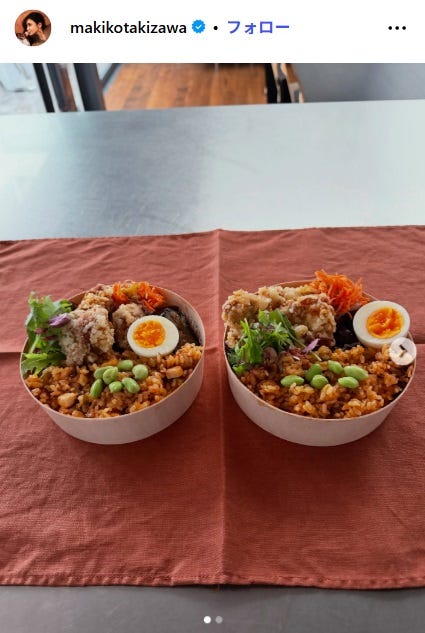 モデルの滝沢眞規子が10月21日、自身のInstagramを更新。駅弁風のチキンライス弁当を公開し、...