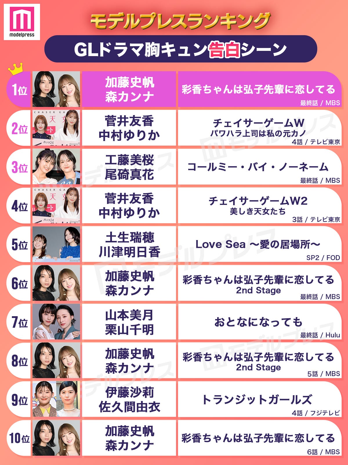読者が選ぶ「GLドラマ胸キュン告白シーン」トップ10を発表【モデルプレスランキング】