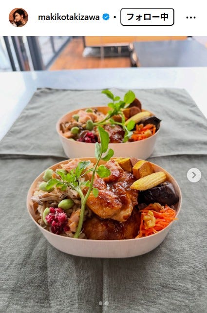 モデルの滝沢眞規子が10月23日、自身のInstagramを更新。彩り豊かな手作り弁当を公開し、話題...