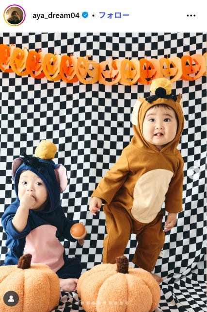 Dream Aya、子どもの「トムとジェリー」ハロウィンショット公開「やんちゃ天使」「お母さんに似てきた」と反響