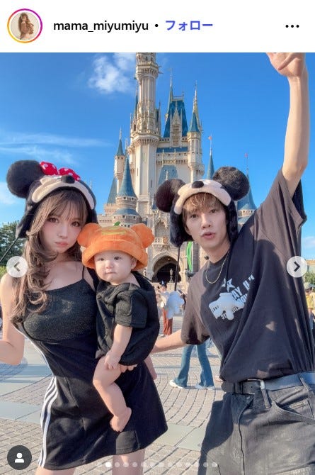ばんばんざい・ぎし&桜井美悠、0歳息子と家族ディズニーへ 3ショットに「服の色揃えたのかな?」「憧れる」と反響