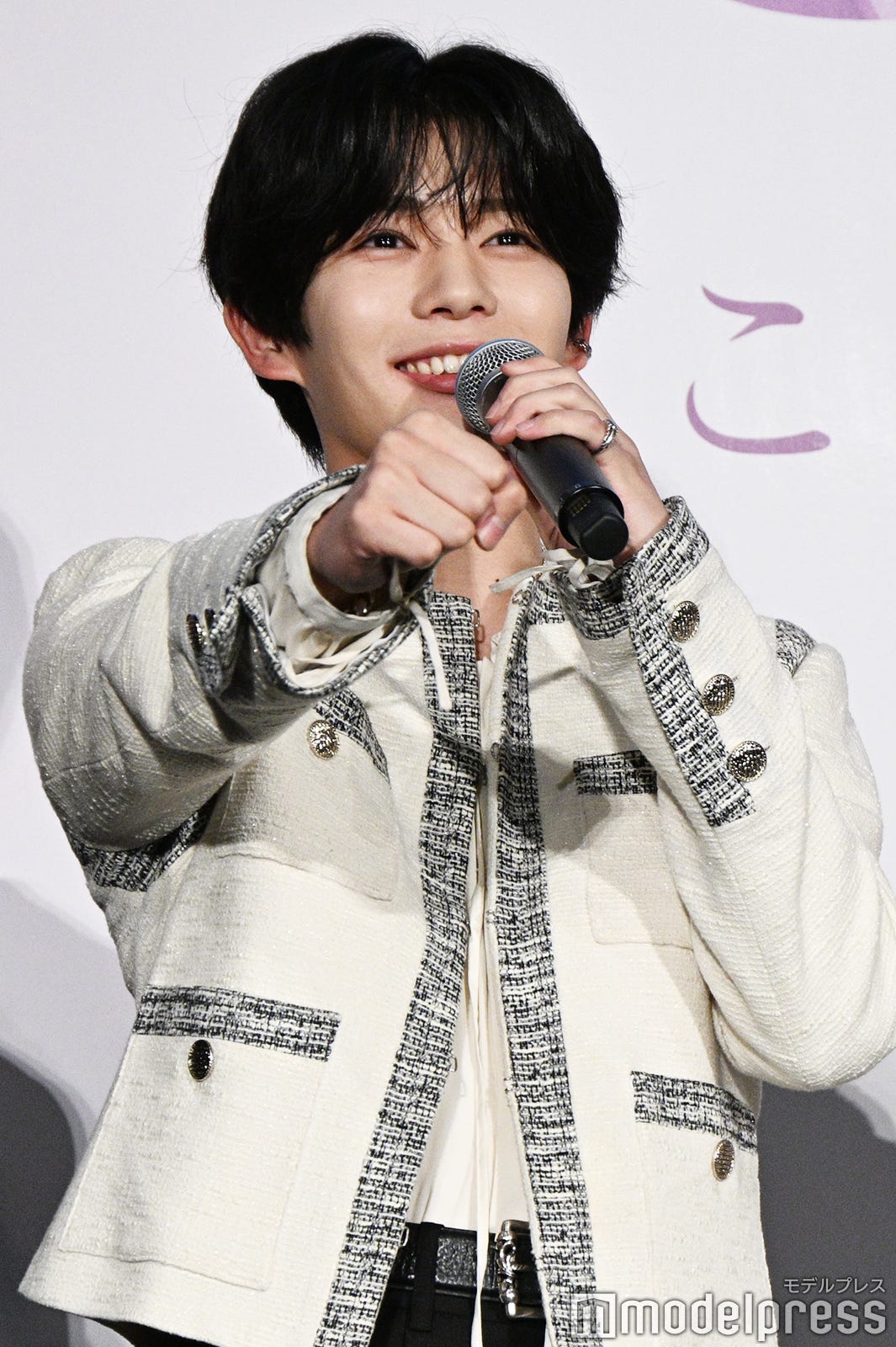 なにわ男子の長尾謙杜と女優の山田杏奈が24日、都内で行われたW主演を務める映画『恋に至る病』(10月...