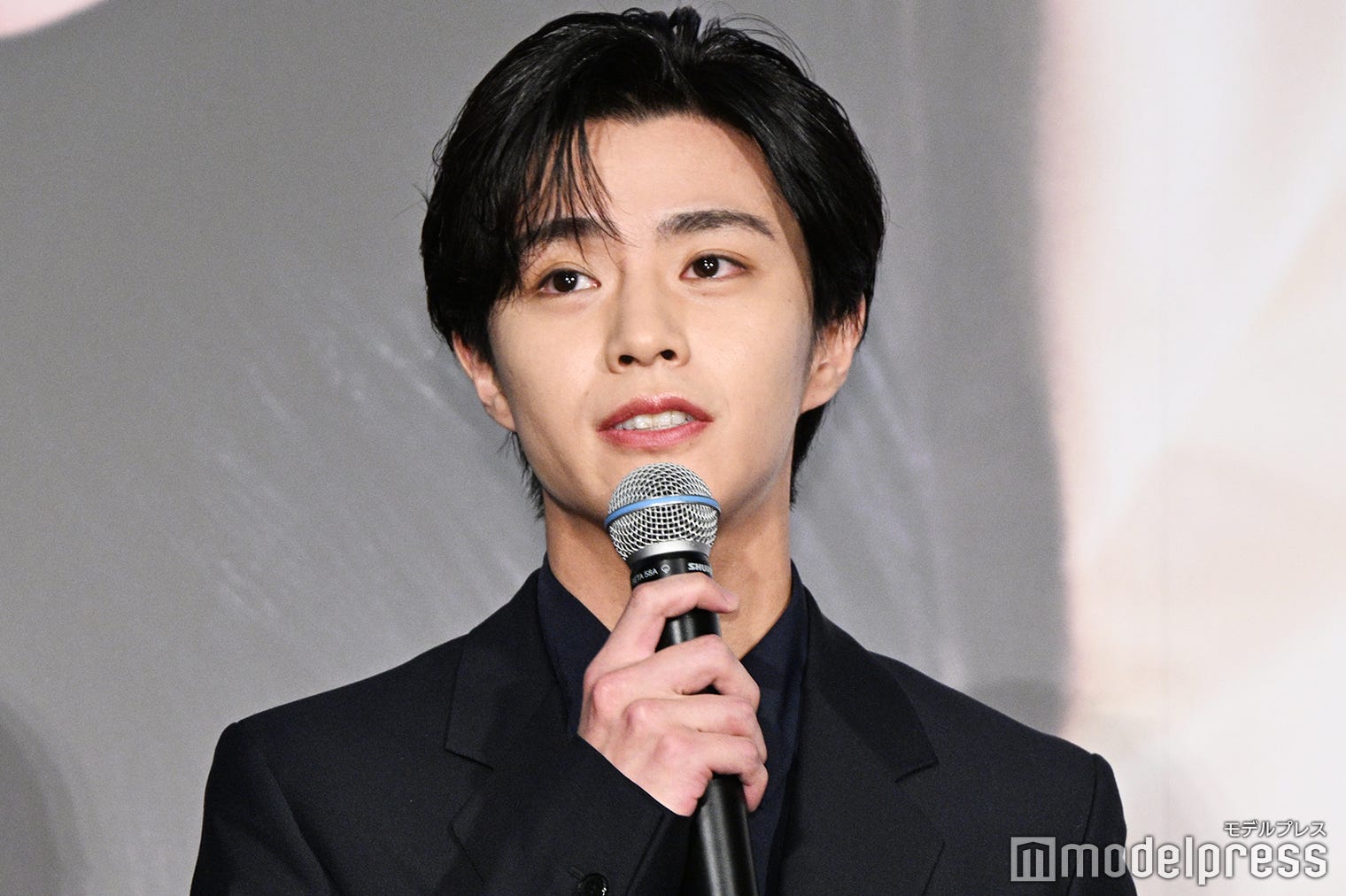 なにわ男子の長尾謙杜と女優の山田杏奈が24日、都内で行われたW主演を務める映画『恋に至る病』(10月...