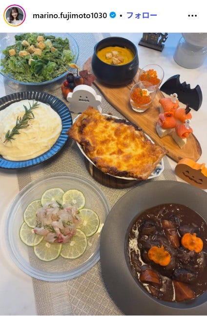 新婚のフジ藤本万梨乃アナ「お料理は初心者」ハロウィンごはん8種公開「レストランみたい」「レベル高すぎ」と反響