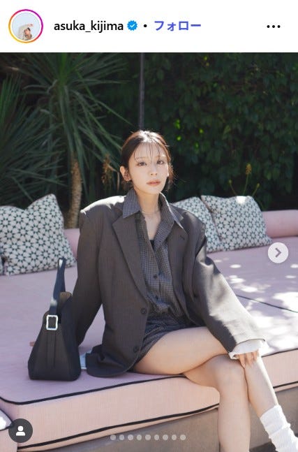 モデルの貴島明日香が10月23日、自身のInstagramを更新。美しい脚が際立つコーディネートに反...