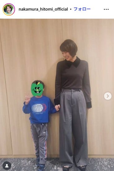 フリーアナウンサーの中村仁美が10月25日、自身のInstagramを更新。三男との手繋ぎショットを...
