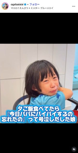 パンサー尾形の妻「パパとずっと一緒にいたい」と号泣の娘公開「もらい泣き」「パパ愛されてる」と反響