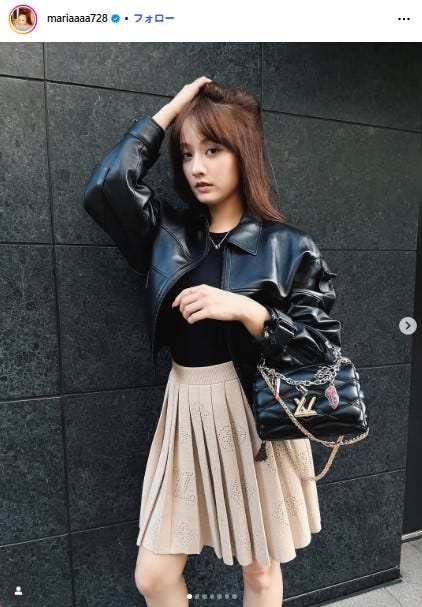 モデル・タレントの谷まりあが26日、自身のInstagramを更新。革のジャケットにミニスカートを合...