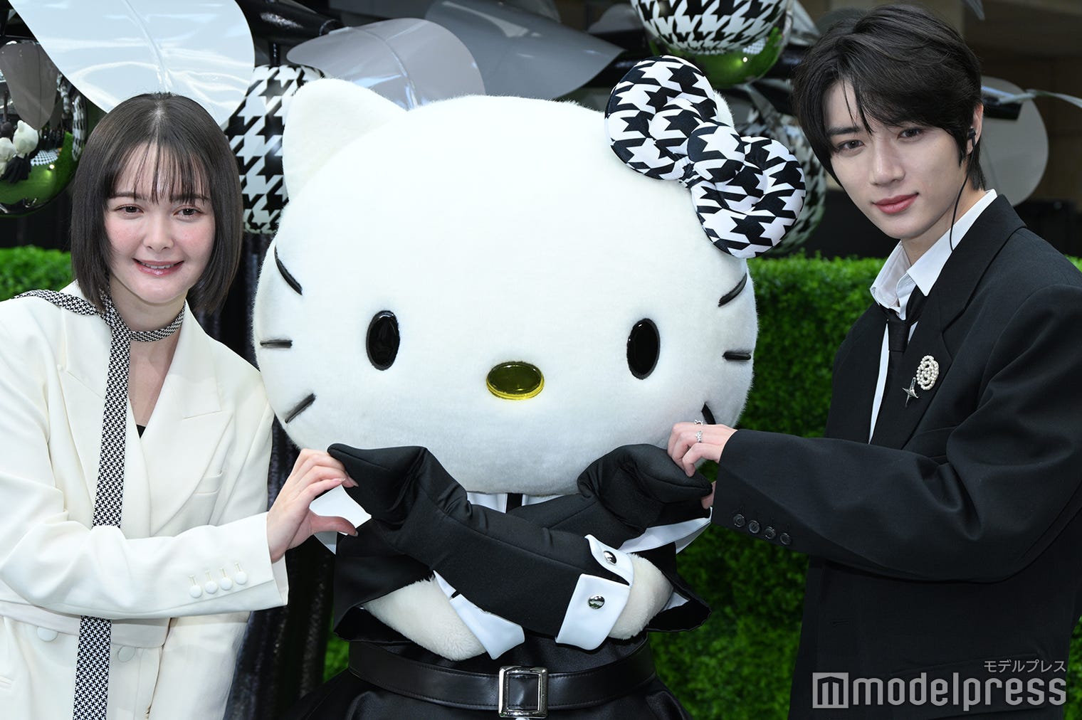 玉城ティナ、ハローキティ、BEOMGYU(ボムギュ)でハートポーズ(C)モデルプレス