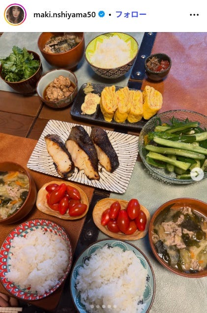 モデルの西山茉希が10月28日、自身のInstagramを更新。健康的な和定食を公開した。