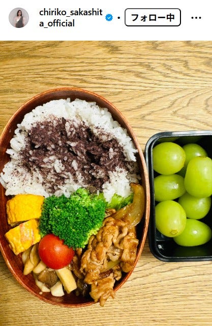タレントの坂下千里子が10月30日、自身のInstagramを更新。娘のための手作り弁当を公開した。