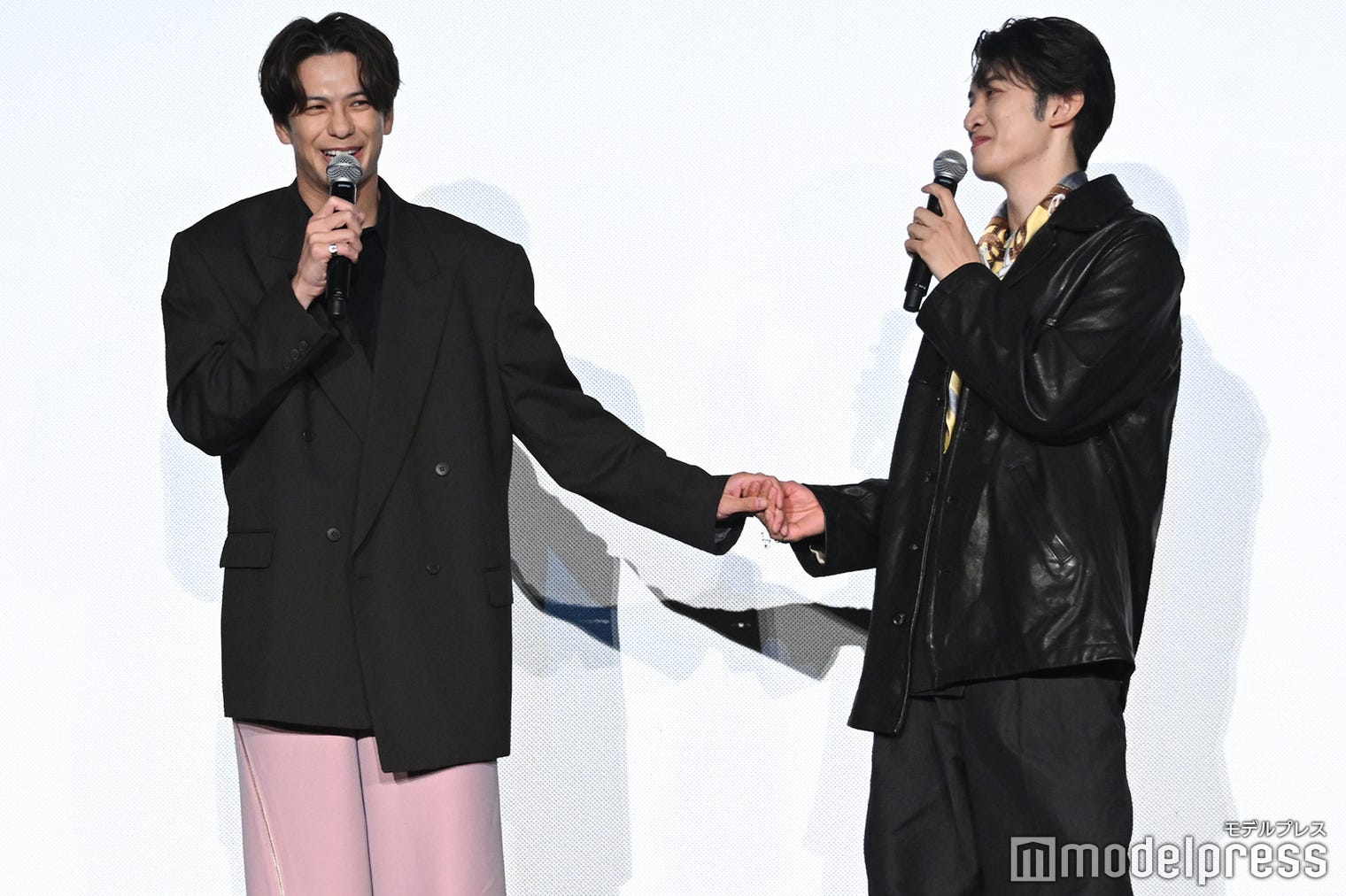 向井康二に手を握られ動揺する森崎ウィン(左)(C)モデルプレス