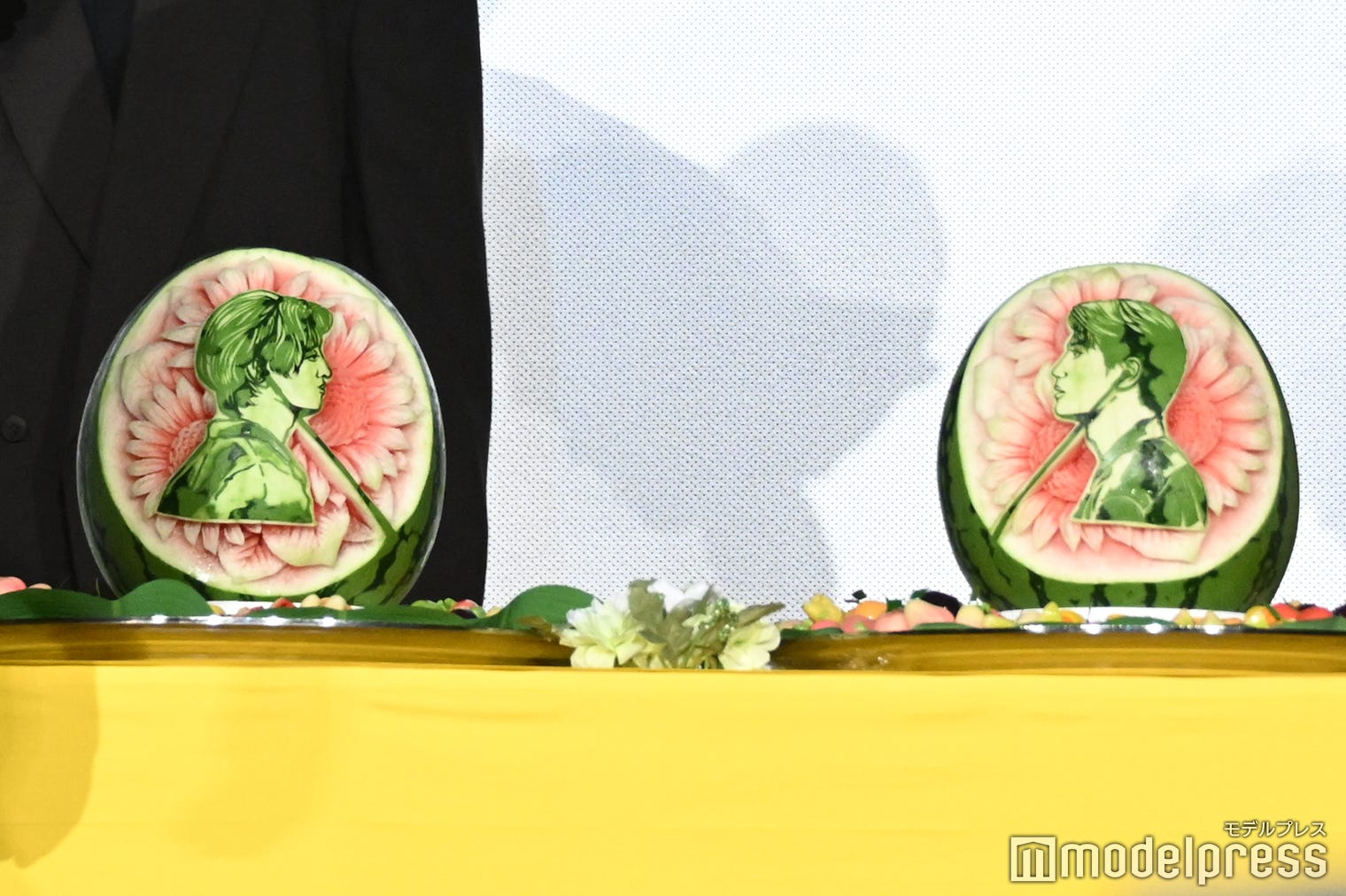 カイとソウタのビジュアルが描かれたカービング(C)モデルプレス