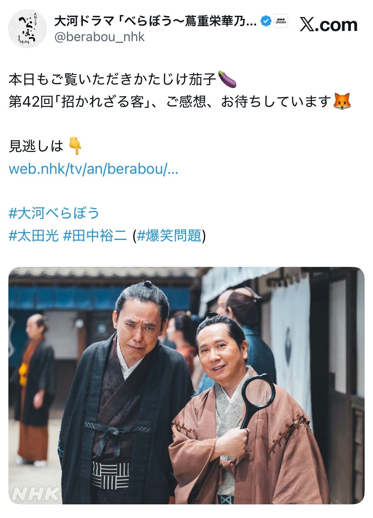 大河「べらぼう」大物芸人の登場でXトレンド入りの反響「コンビが揃った」「ビックリして声出た」