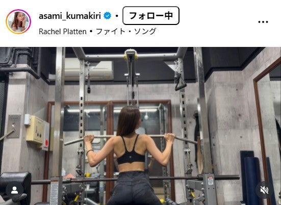 タレントの熊切あさ美が11月5日、自身のInstagramを更新。トレーニングを行う動画を公開し、反...