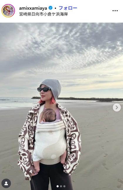 ツインズユニット・AMIAYAのAMIが11月4日、自身のInstagramを更新。長男の顔出しショ...