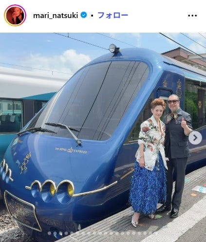夏木マリ、夫と豪華観光列車で旅行へ 2ショットに反響「絵になる」「上品でかっこいい」