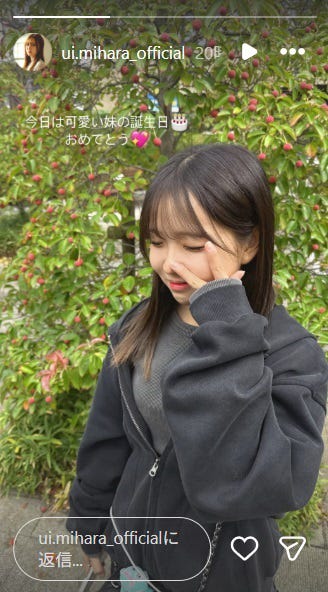 三原羽衣Instagramストーリーズより