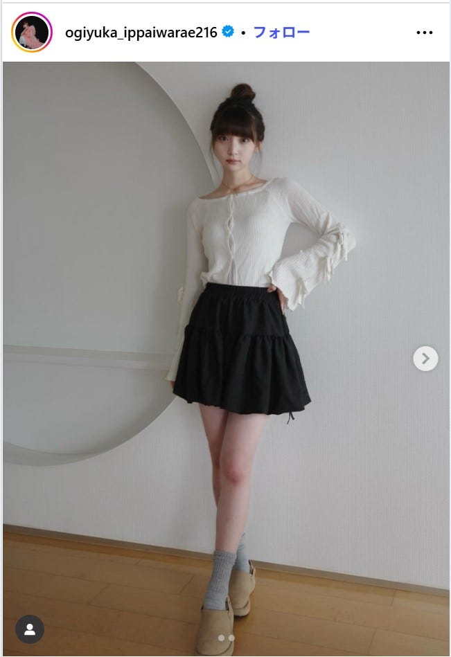 元NGT48の荻野由佳が11月6日、自身のInstagramを更新。ミニスカート姿を公開し、話題を呼...