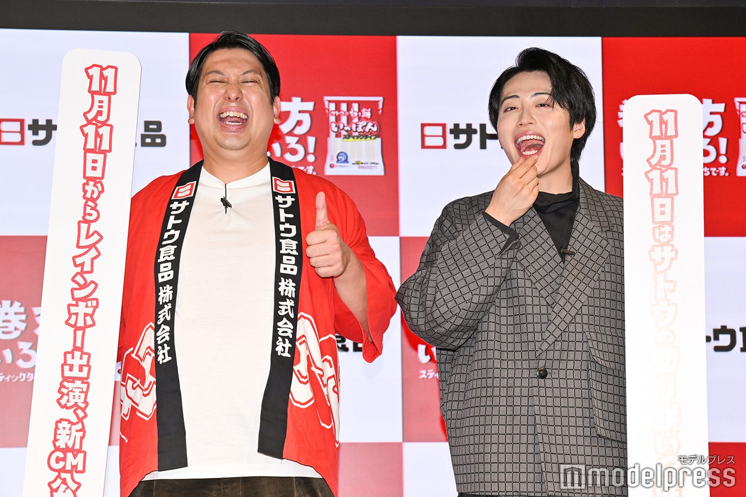 お笑いコンビ・レインボーの池田直人とジャンボたかおが10日、都内で行われた「サトウの切り餅いっぽん新...