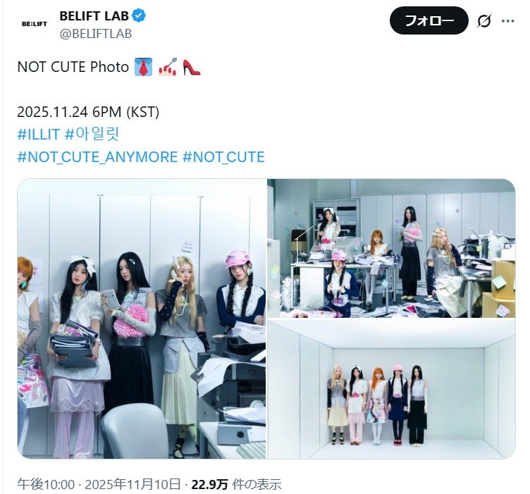5人組ガールグループ・ILLIT(アイリット)の公式X(旧Twitter)が11月10日に更新された...