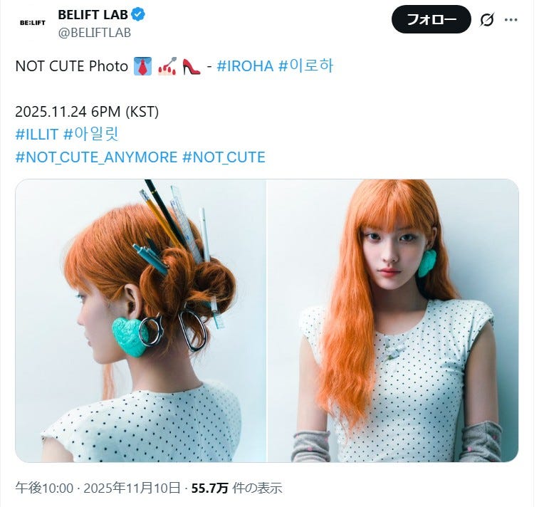 5人組ガールグループ・ILLIT(アイリット)の公式X(旧Twitter)が11月10日に更新された...