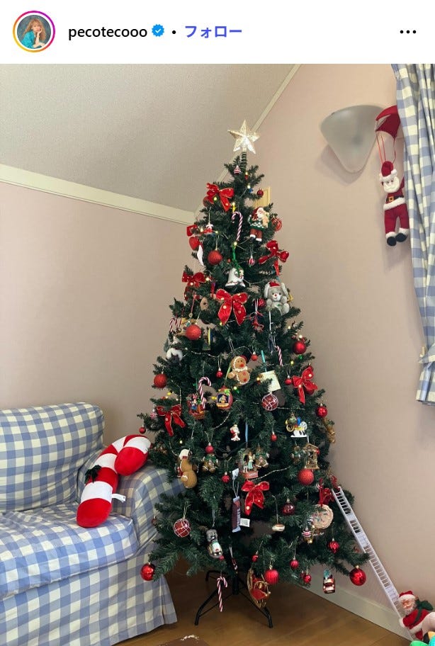 タレントのpecoが11月13日、自身のInstagramを更新。自宅のクリスマスツリーを公開し、反...