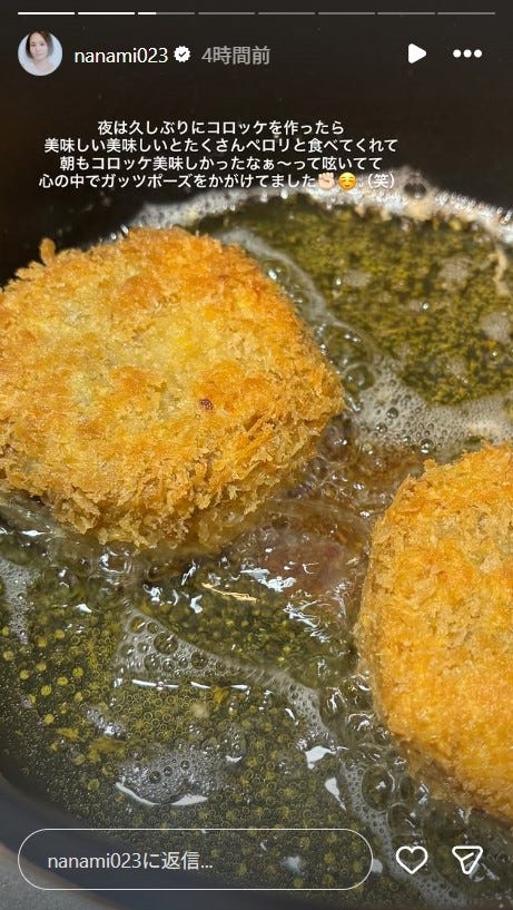 堀北真希の妹・奈々未、手作りコロッケ公開「サクサクで美味しそう」「愛情たっぷり」の声