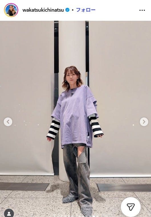 若槻千夏、ダメージジーンズから美脚チラリ「着こなしお洒落」「年々可愛さ増してる」の声