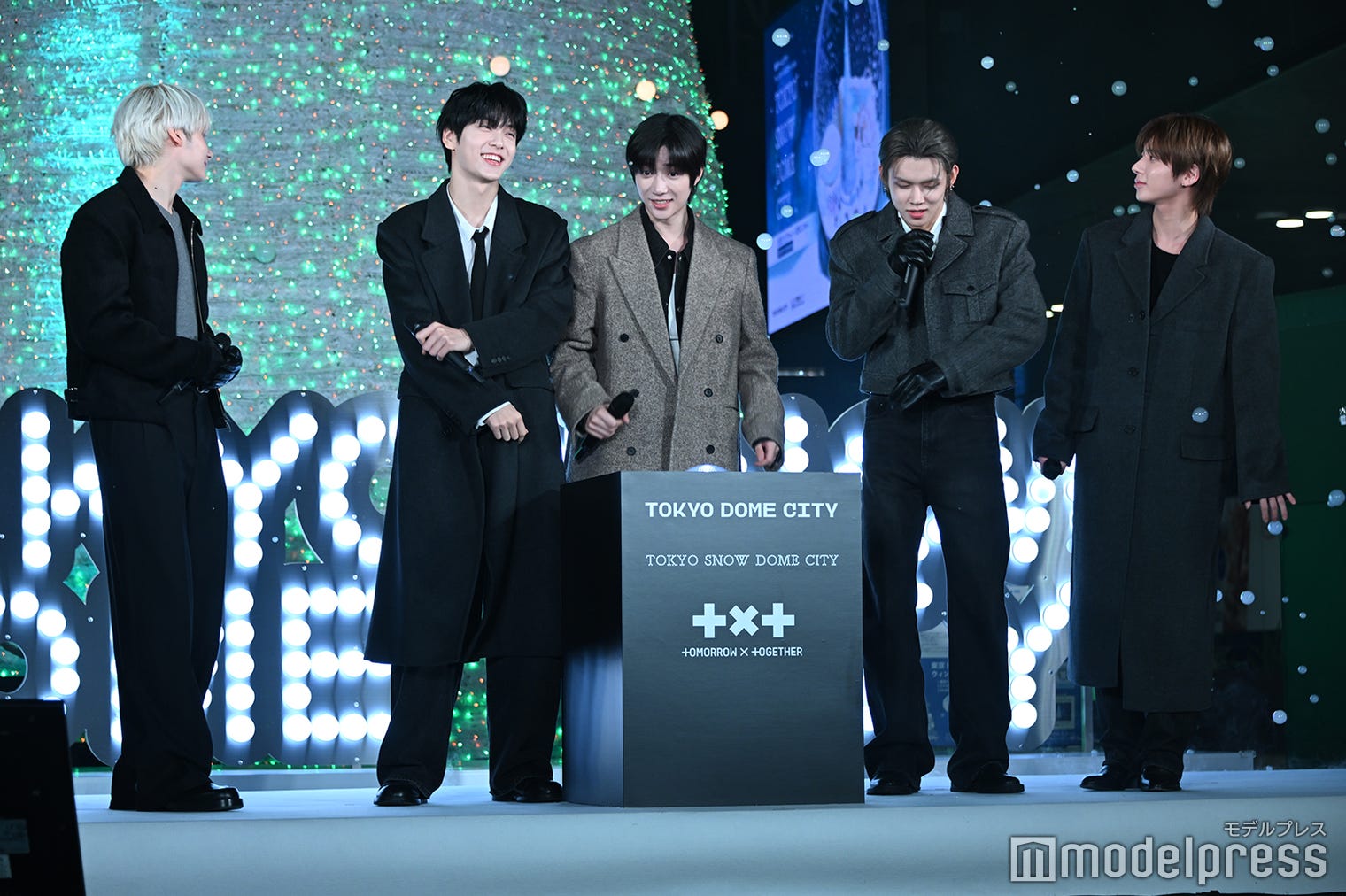 踊り出すTOMORROW X TOGETHER③/(左より)SOOBIN(スビン)、HUENINGKAI(ヒュニンカイ)、BEOMGYU(ボムギュ)、YEONJUN(ヨンジュン)、TAEHYUN(テヒョン)(C)モデルプレス
