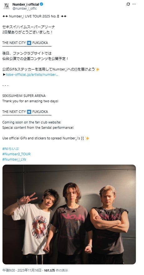 Number_iの公式X(旧Twitter)が11月16日に更新された。平野紫耀の鍛え上げられた筋肉...