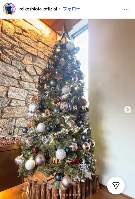 元バドミントン選手でタレントの潮田玲子が11月19日、自身のInstagramを更新。飾り付けたクリ...