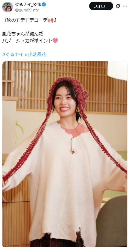 小芝風花、手編みのバブーシュカでモテ私服コーデ披露「売り物かと」「カラーセンス抜群」絶賛の声