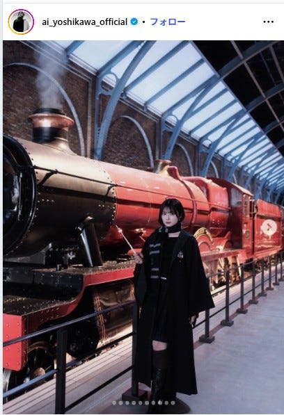 女優の吉川愛が11月22日、自身のInstagramを更新。映画「ハリー・ポッター」の衣装で、美しい...