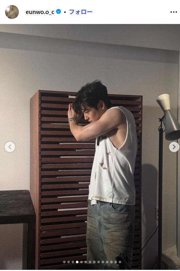 ASTROチャウヌ、肉体美のぞくノースリーブ姿披露「見惚れる」「姿が見れて嬉しい」とファン歓喜